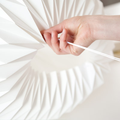 In unserer Faltwerkstatt wird jede Lampe von uns mit großer Detailverliebtheit entworfen und mit Sorgfalt handgefertigt. „Formen falten, Licht gestalten“ ist das Motto in unserer Manufaktur.